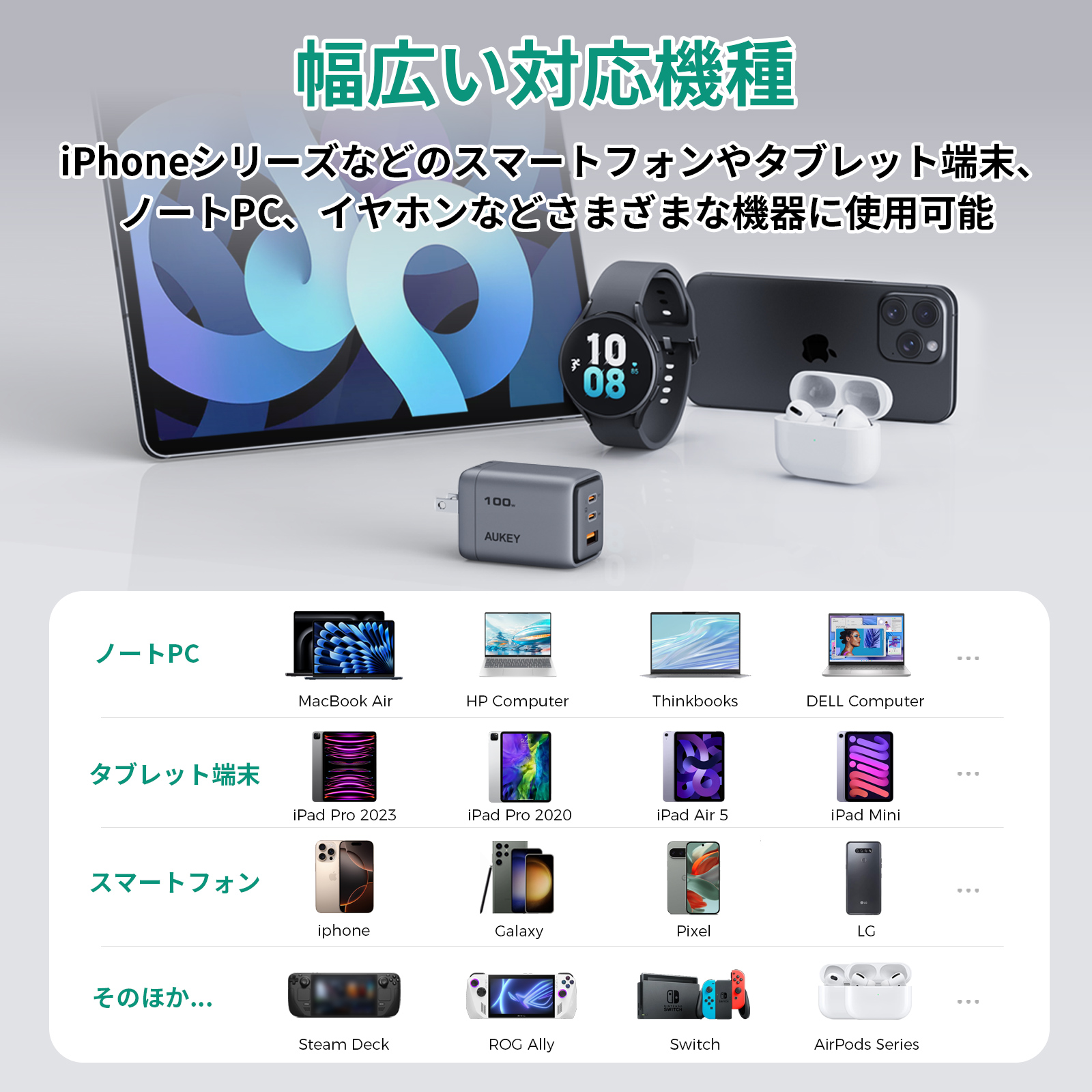 商品ページ:https://jp.aukey.com/products/comet-mix-100w-usb-c-fast-charger-pa-c5