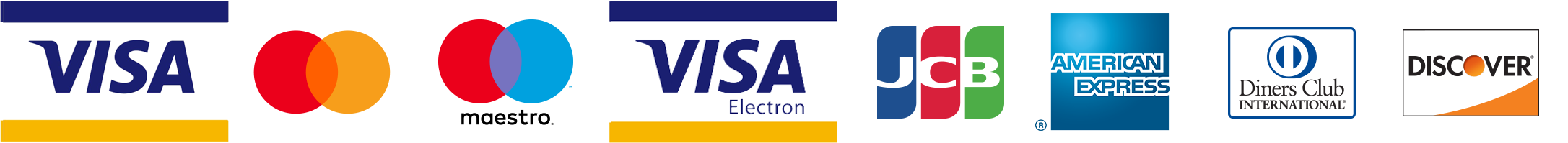 VISA、MASTERS、JCB、AMERICAN EXPRESS、DINERS、DISCOVER