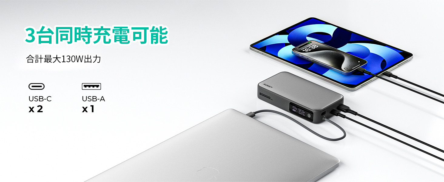 USB-Cケーブル +USB-C出力:65W+65W(130W MAX)