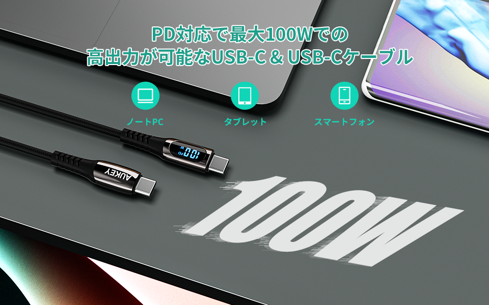 【急速充電・高速データ転送に対応】USB PD (Power Delivery)による最大100W (20V/5A)の急速充電に対応しています。Type-C端子搭載のパソコン、スマートフォン、タブレット、充電器やゲーム機器など、さまざまなUSB-C機器の充電に最適です。