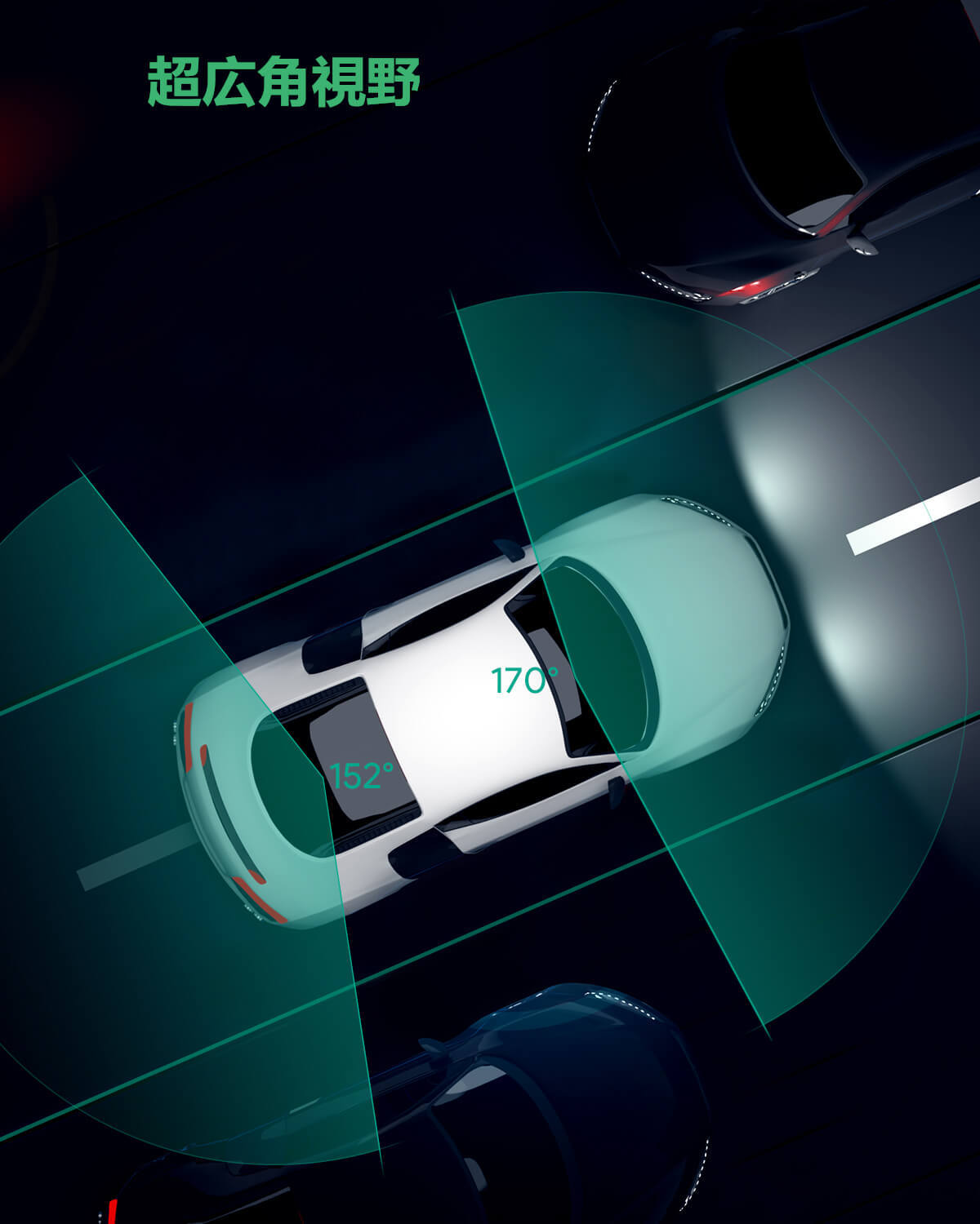 視角: フロントカメラ: 170° リアカメラ: 152°