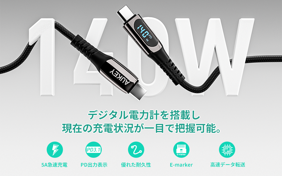 【安全な急速充電・高速データ転送が可能】USB PD (Power Delivery)による最大140W (28V/5A)の急速充電に対応しています。Type-C端子搭載のパソコン、スマートフォン、タブレット、充電器やゲーム機器など、さまざまなUSB-C機器の充電に最適です。