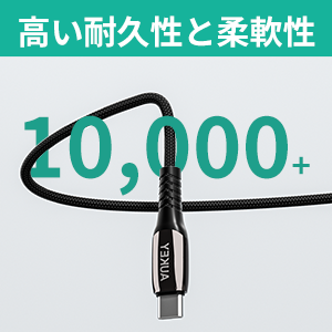 【高品質で優れた耐久性】本製品のケーブルは耐久性に優れた編組ナイロンで外装され、なめらかな手触りで高級感のある外観です。抜群の柔軟性と耐久性があり10,000回以上の折り曲げ強度試験にも合格しています。からまりにくく折り曲げにも強く、断線しにくい製品です。