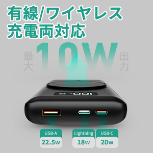 - ワイヤレス出力:10W / 7.5W / 5W (iPhoneシリーズは最大7.5W)