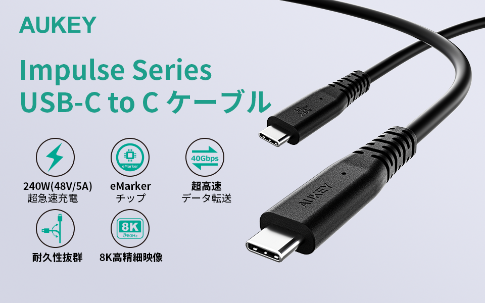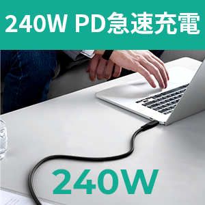 【最大240Wの給電に対応】USB4(Gen 3×2)規格に対応した高性能なUSB TYPE-C to TYPE-Cケーブル。最大240W(48V/5A)までの出力に対応し、スマートフォンやタブレット端末はもちろん、ノートパソコンなど、さまざまなUSB-C端子搭載機器へのフルスピード充電が可能です。