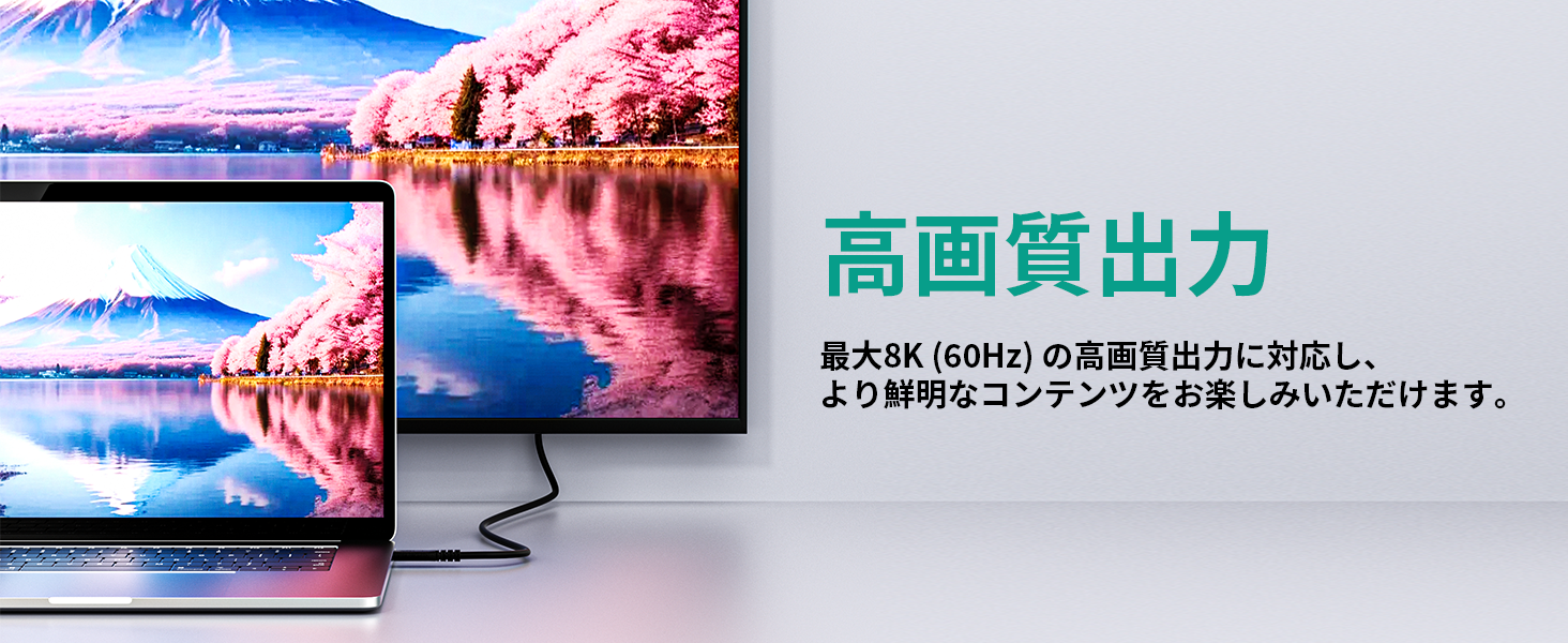 【次世代の映像規格8Kをサポート】高い映像出力能力を備え、8K@60Hzまでの超高精細な映像出力を実現しました。