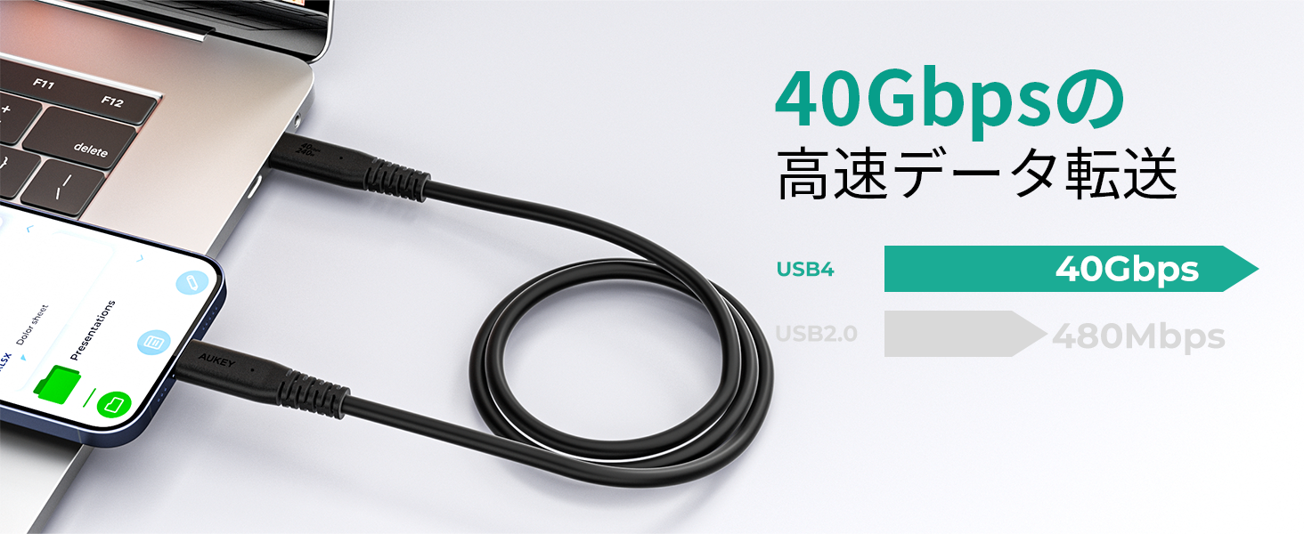 【超高速データ転送に対応】最大40Gbpsまでの超高速データ転送をサポートしており、大容量のファイル・写真・音楽データなどの転送も超スピーディーにおこなえます。大容量データ転送にもストレスを感じることなく、快適にご使用いただくことが可能です。