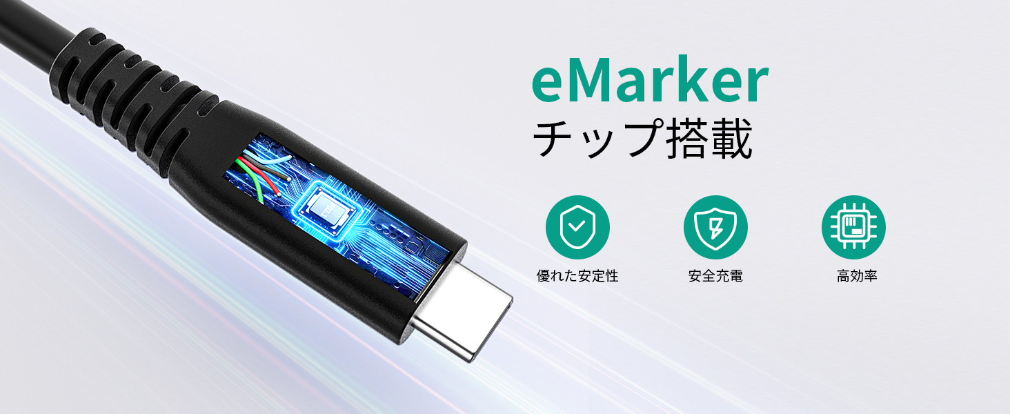 USB4規格 USB-C to C高性能ケーブル「CB-CD24」は、eMarker内蔵で高い安定性・安全性を保証。ノートパソコン等、USB-C端子搭載のさまざまな機器への急速充電や映像出力に安心して長くご使用いただけます。