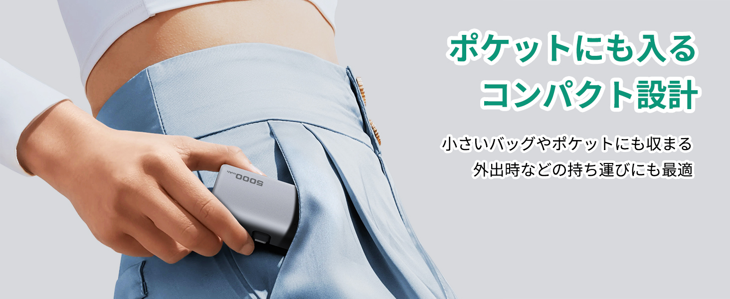 【USB-C端子一体型】手軽に充電ができる直挿しタイプのコンパクトなモバイルバッテリー。機器に挿すだけで充電が可能です。ケーブルレスで充電できるので、ストレスフリーでスマートフォンを操作できます。