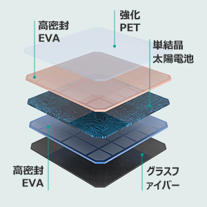 【太陽光だけで発電が可能】単結晶パネルで高い発電効率。前モデルと比較して、製品サイズはコンパクト化しながらも、性能の向上を実現しました(変換効率アップ 20% ⇒ 23%)。DC、USB出力ポート(A×1/C×1)搭載でソーラーパネルから機器への充電も可能です。