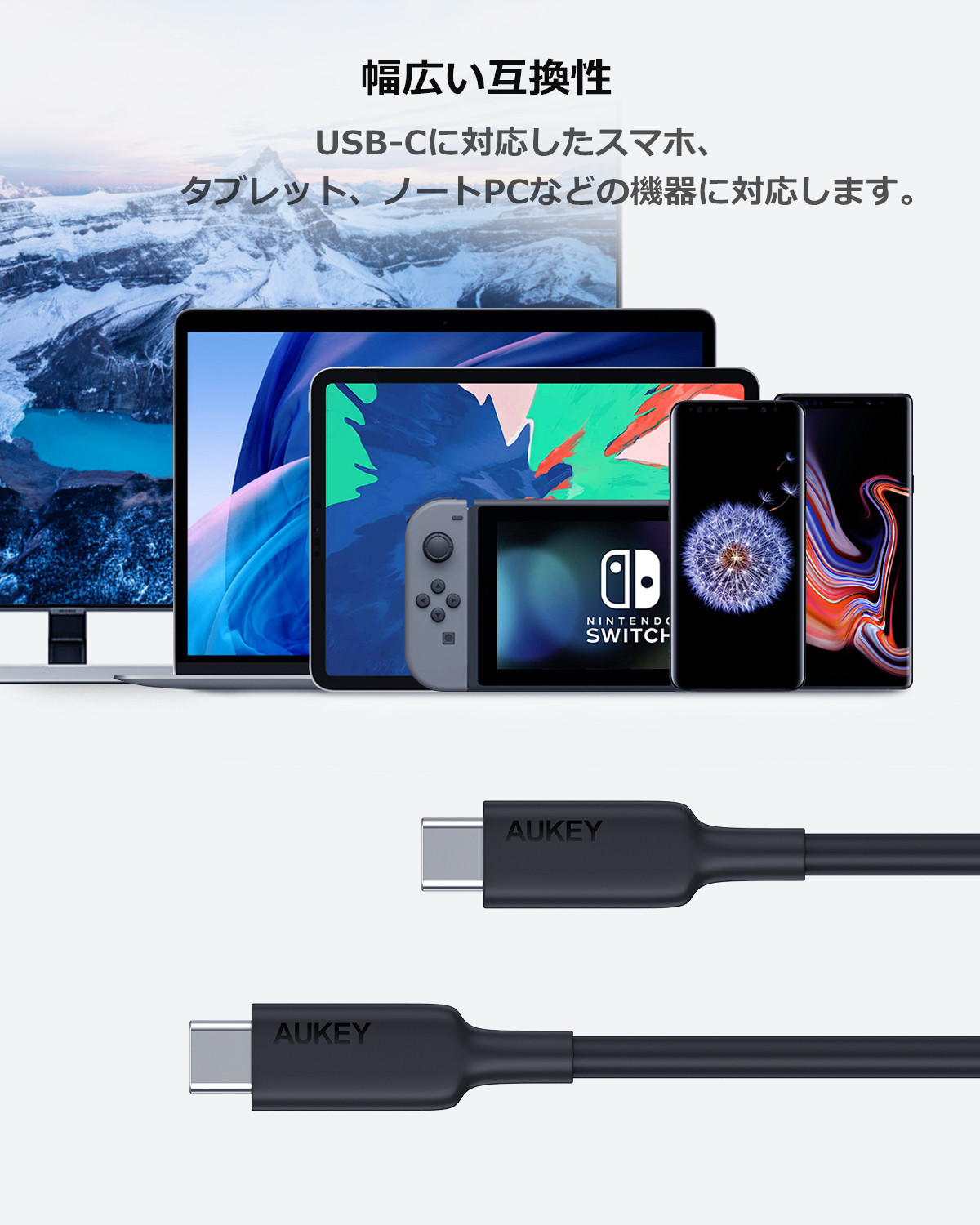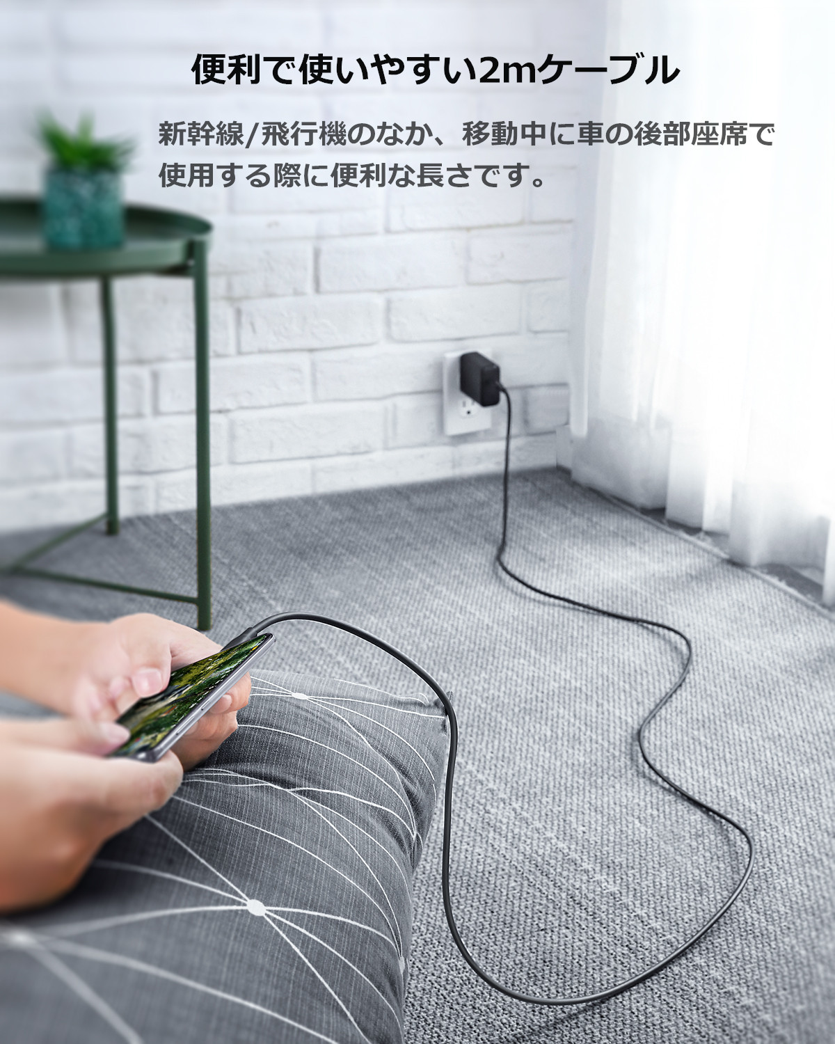 【USB Power Delivery対応&E-Markerチップ搭載】USB Power Delivery技術に対応し、E-Markerチップを搭載しているため、最大60W(3A)まで安全かつ安定して出力することが可能です。スマホだけでなく充電に時間のかかる各種タブレット、PCなどの充電時間を大幅に短縮できます。※充電器と接続する機器がPD対応している場合に限ります。