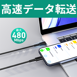【急速充電に対応】USB PD (Power Delivery)による最大60W (20V/3A)の急速充電に対応しています。Type-C端子搭載のパソコン、スマートフォン、タブレット、充電器やゲーム機器など、さまざまなUSB-C機器の充電にご使用が可能です。安全性に優れ、接続機器を守りながら安定した高速充電が可能な高品質なケーブルは、デイリーユースに最適です!