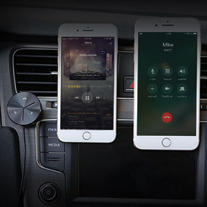 AUX端子付きカーオーディオをワイヤレス化。スマホの中のお気に入りの曲をFMトランスミッターよりも高音質で車内で楽しめます。