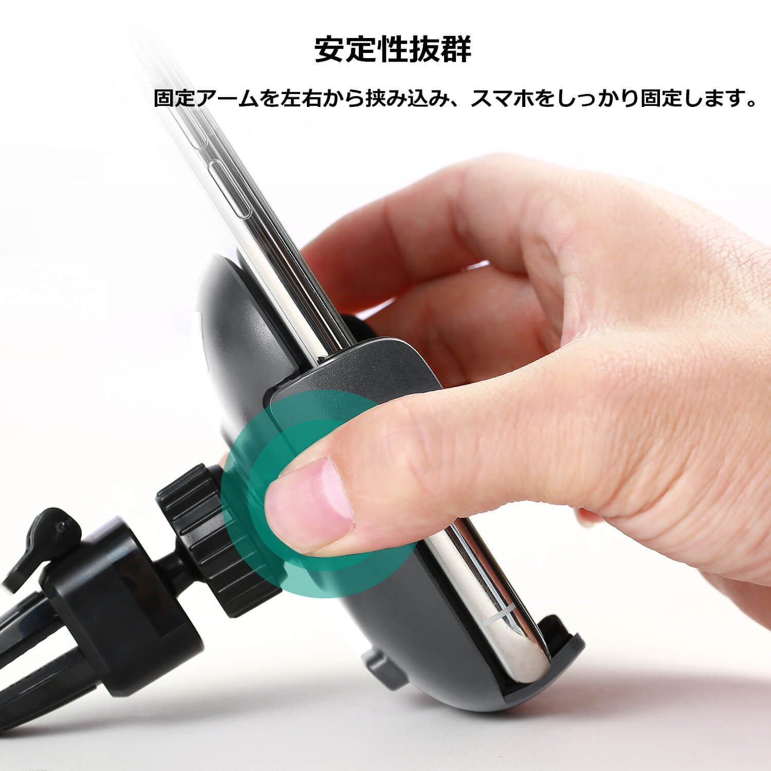 【片手で操作、利便性抜群】簡単に片手で操作できます。裏面にあるボタンを押すと、サイドアームが自動で開いて、スマホをしっかりと掴めます。着脱も片手で簡単にできます。スマートフォンとの接触面にも高品質で柔らかいシリコーンが付いていて、スマートフォンを傷つける心配もございません。