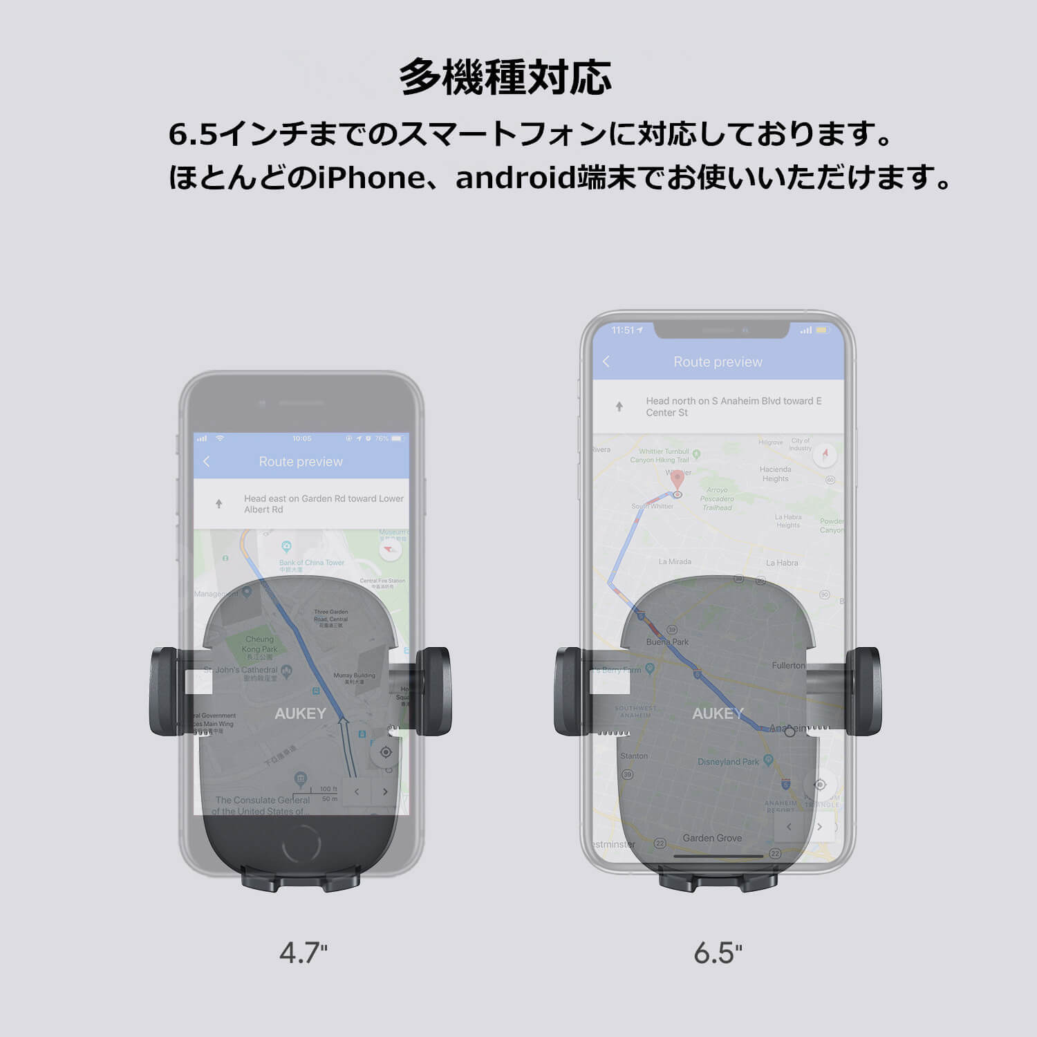 【多機種対応】サイドアーム伸縮範囲を4.8~9.4cmまで調整できるので、iPhone 11/11 Pro/Xs/XS Max/8/7/6、Samsung Galaxy S9+など幅広い機種対応できます。