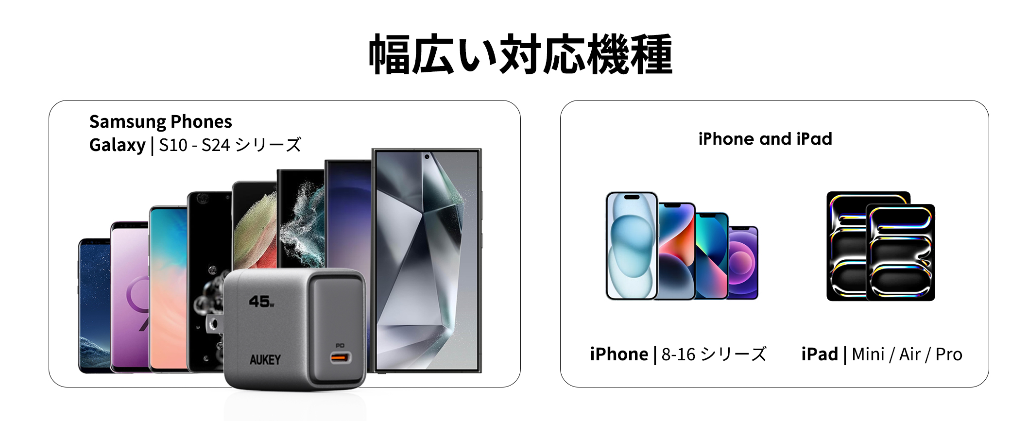 【幅広い機器への急速充電に対応】PD3.0に対応し、最大45Wの高出力!iPhoneやAndroidスマートフォンだけでなく、タブレット端末や、MacBook、PD対応Windows PCなどのノートPCなど、幅広いUSB-C機器への急速充電が可能です。