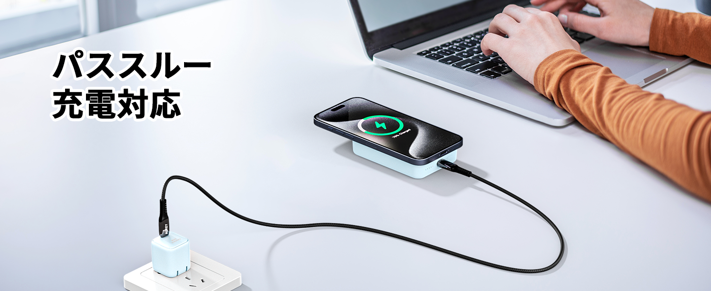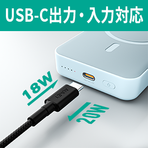 【20W PDをサポートし急速充電が可能】USB-Cポートは20W PDをサポートしており、移動中や時間のない時でもスピーディーに充電の完了が可能です。幅広いUSB機器への急速充電に使用できます。また、パススルー充電機能を搭載しており、本体を充電しながら機器への給電も可能です。