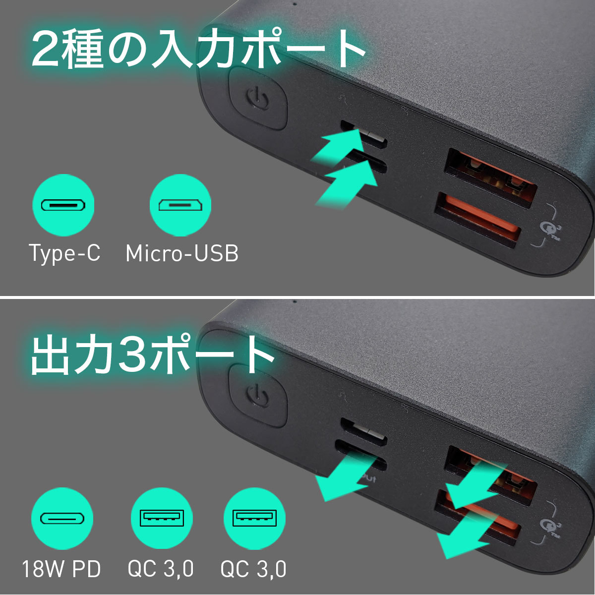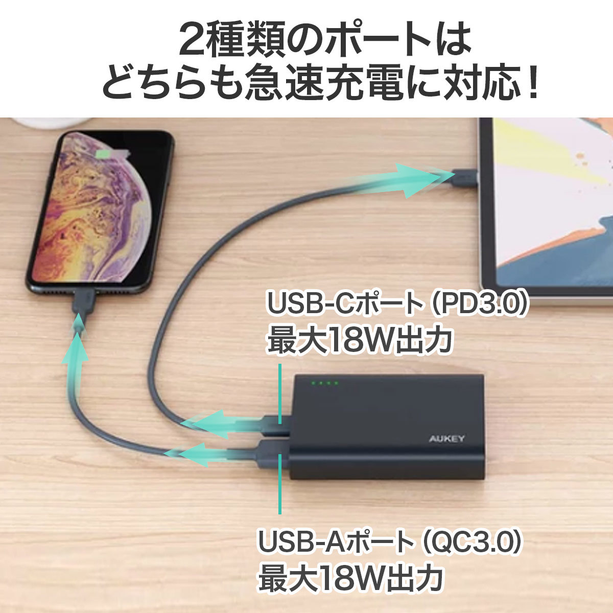 【Type-Cポート搭載】Type-Cポートは入力と出力の両方に対応。モバイルバッテリーの充電と機器への充電がケーブル1本で可能。