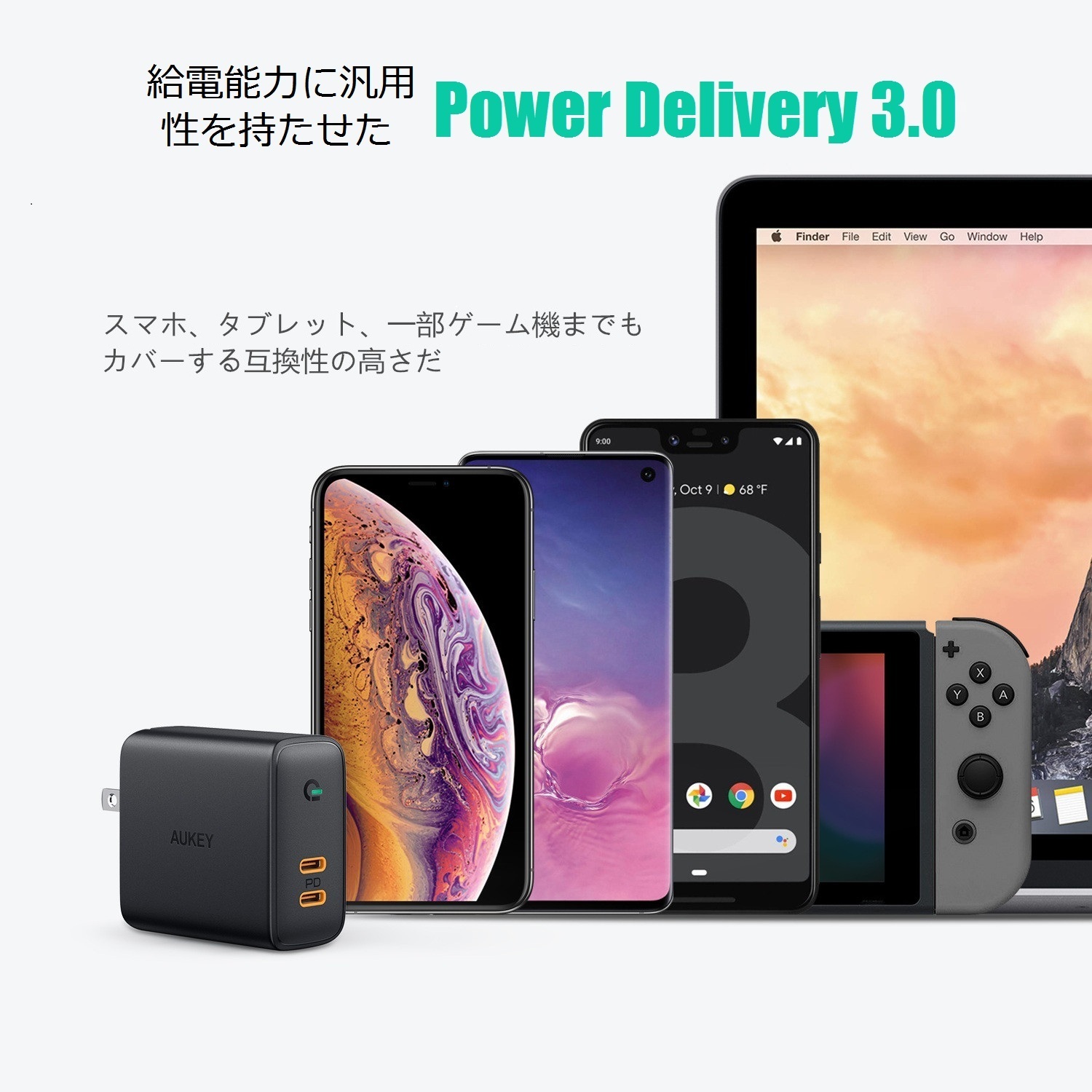【コンパクトでハイパワー】Power Delivery3.0対応で最大36Wの高出力を実現しました。最新のMacBook Proを含む、13“MacBook Pro、iPhone XS / XS、Nintendo Switch、Nintendo Switchなど幅広いUSB-C電化製品を急速充電が可能です。