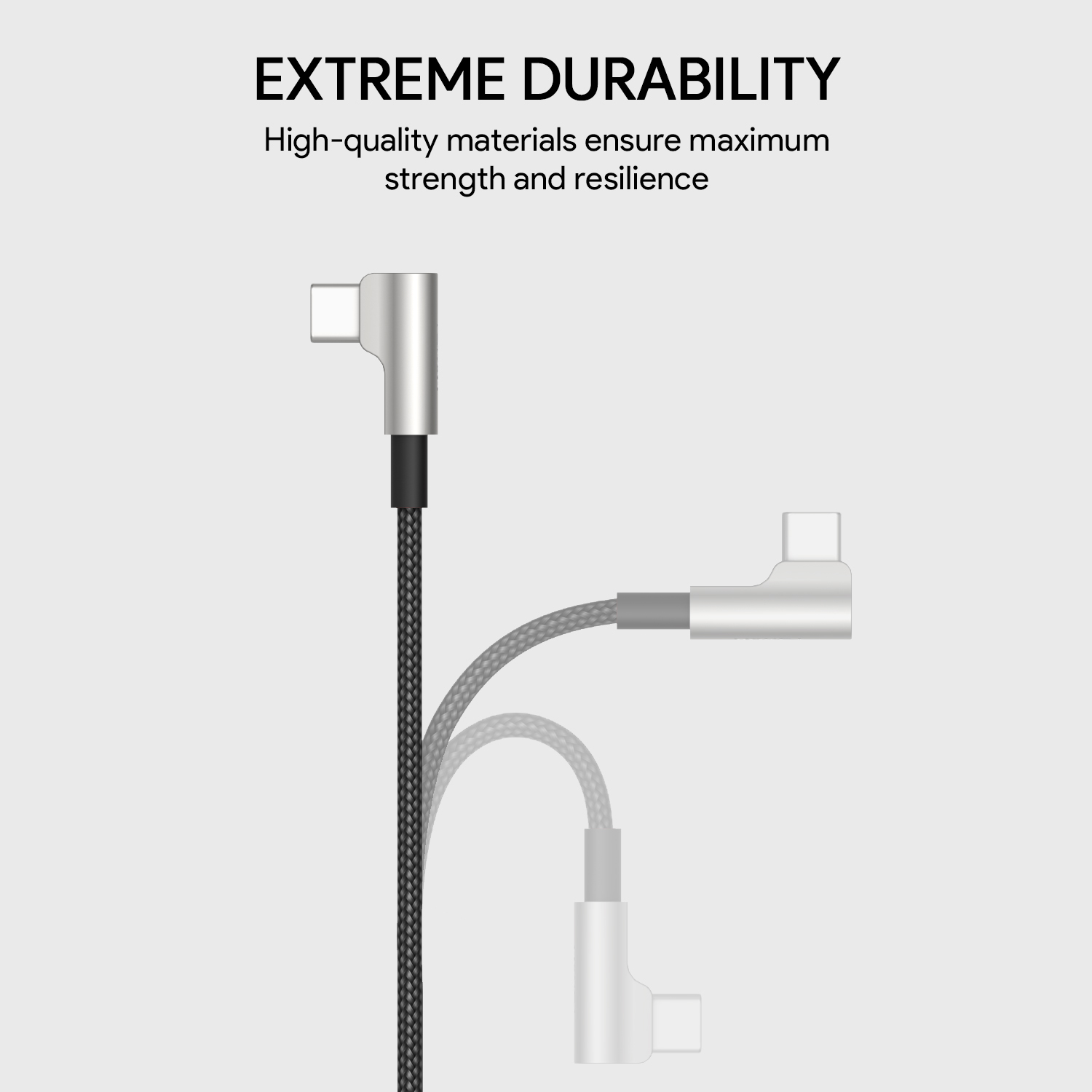 【L字型コネクタ】USB Cケーブル両端子部分はL字型で設計されて、隣接する亜鉛合金製の箇所と共に、5000回以上の折り曲げ、1万回以上抜き差しことが可能です。使用寿命は普通の3倍!