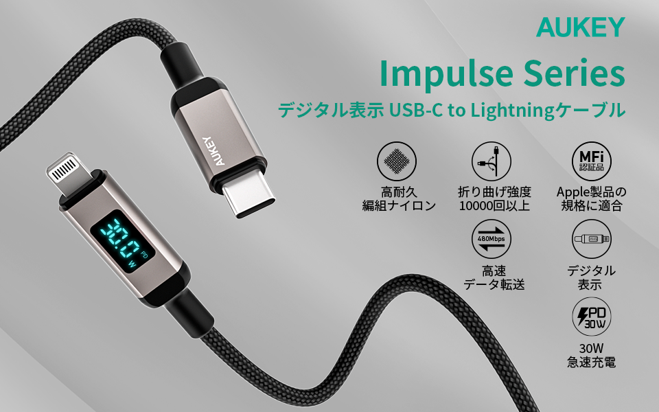 【高品質で優れた耐久性】本製品のケーブルは耐久性に優れた編組ナイロンで外装され、なめらかな手触りで高級感のある外観です。抜群の柔軟性と耐久性があり10,000回以上の折り曲げ強度試験にも合格しています。からまりにくく折り曲げにも強く、断線しにくい製品です。